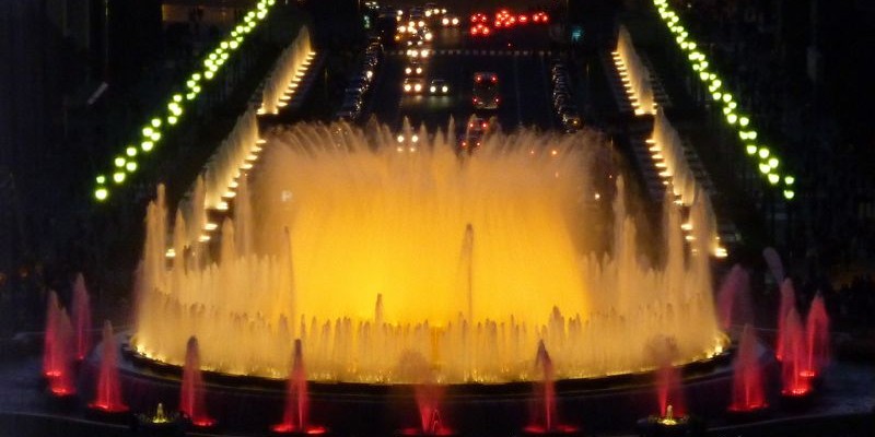 La Fuente Mágica es la parte central de un grupo de cascadas y estanques del eje María Cristina. Es una fuente de dimensiones extraordinaria y que no deja indiferente a nadie con sus juegos de agua y luz y con los sonidos de música clásica que emanan de ella. Cada segundo brotan 2.600 litros de agua en tres estanques y cuenta con un sistema de recirculación de agua.